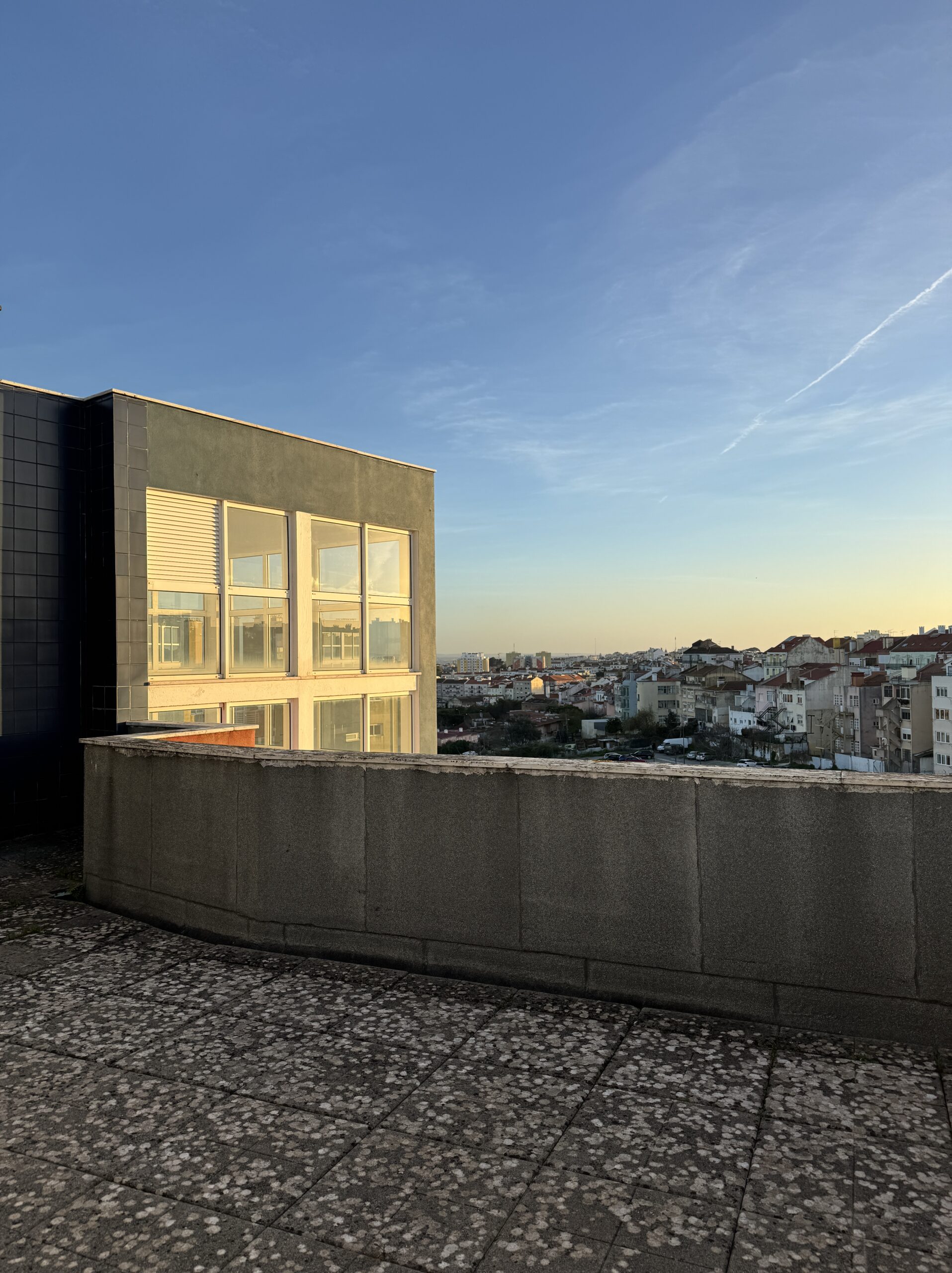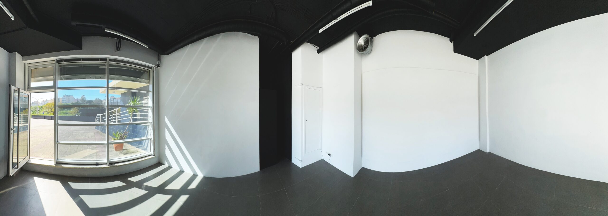 Inaugurated in April 2018 with a first exhibition titled OPEN STUDIO #1, VUG (from 2021, ANE VUG) is located in a small space originally conceived as a shop, which has never been used for this function, as the building to which it belongs overlooks an area without any commercial potential. Located on the border between the central Penha de França district and the Olaias suburb, the building is part of a series of new constructions, built between the late 1990s and early 2000s to satisfy a need for migration of the middle class from the degraded city center to its nearest suburb. However, not having foreseen a real plan of integration with the urban and social fabric of the poorest and most popular suburbs, and following the most recent evolution of the real estate market that has revalued the old historic center of Lisbon, this area is today characterized by a profound lack of identity homogeneity and in a condition of incompleteness that makes it a territory with profound social and economic contradictions. Located behind the Escola Secundária Artística António Arroio, from the studio window it is often possible to see horses or sheep grazing in the semi-abandoned meadow; a stone’s throw away, the Olaias metro station, considered in 2012 as one of the most beautiful and modern stations in Europe; in between, the ancient district of Picheleira; while from the roof of the 8-floor building, the river and its city, in all its directions, reveal themselves.